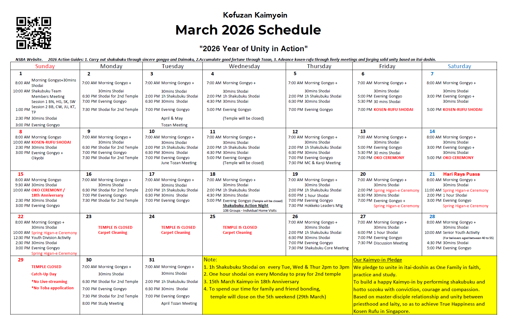 Kaimyo-in is hosting a Charity Food & Essentials Distribution on Sunday, 19 April at 9:00am, where volunteers will pack and distribute food and daily necessities to families in need. Everyone is welcomed, so bring your friends and family along for this meaningful act of community service. Contact your zone ICs to sign up.