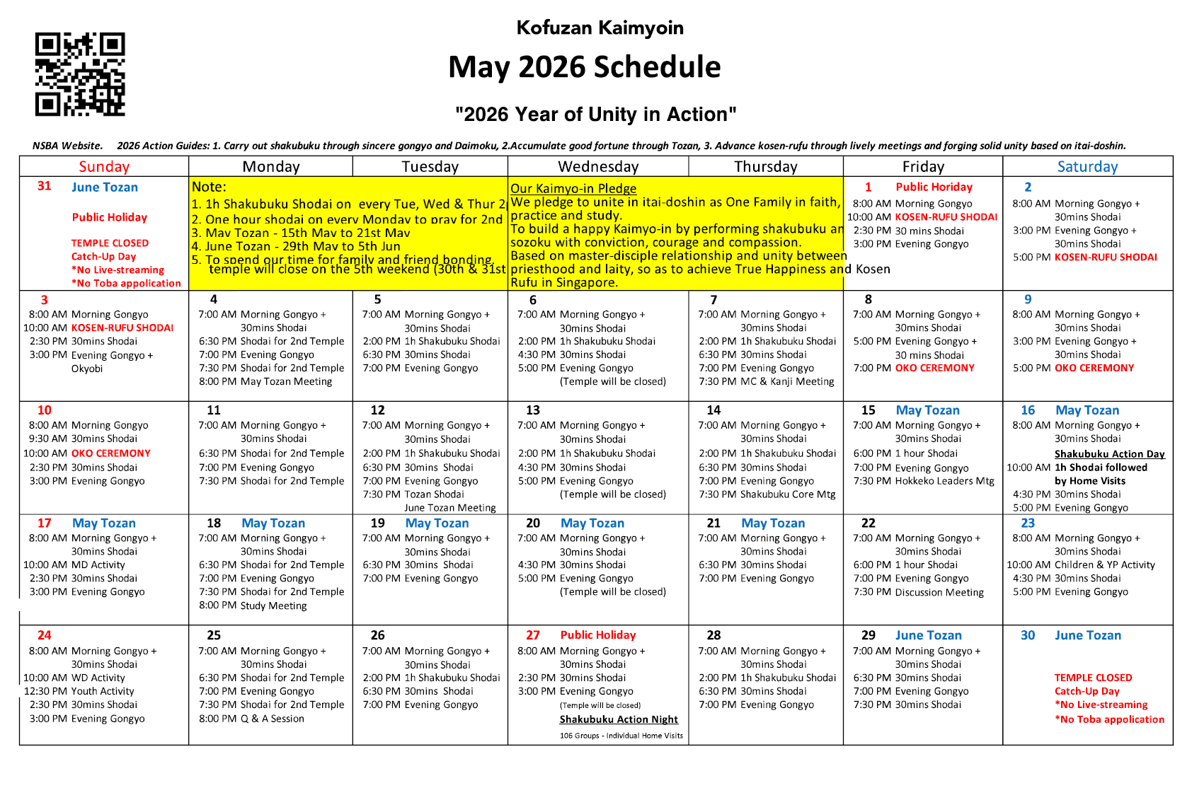 In view of public holiday, Kosen-rufu Shodai on 3 April (Fri) will commence earlier at 10am.