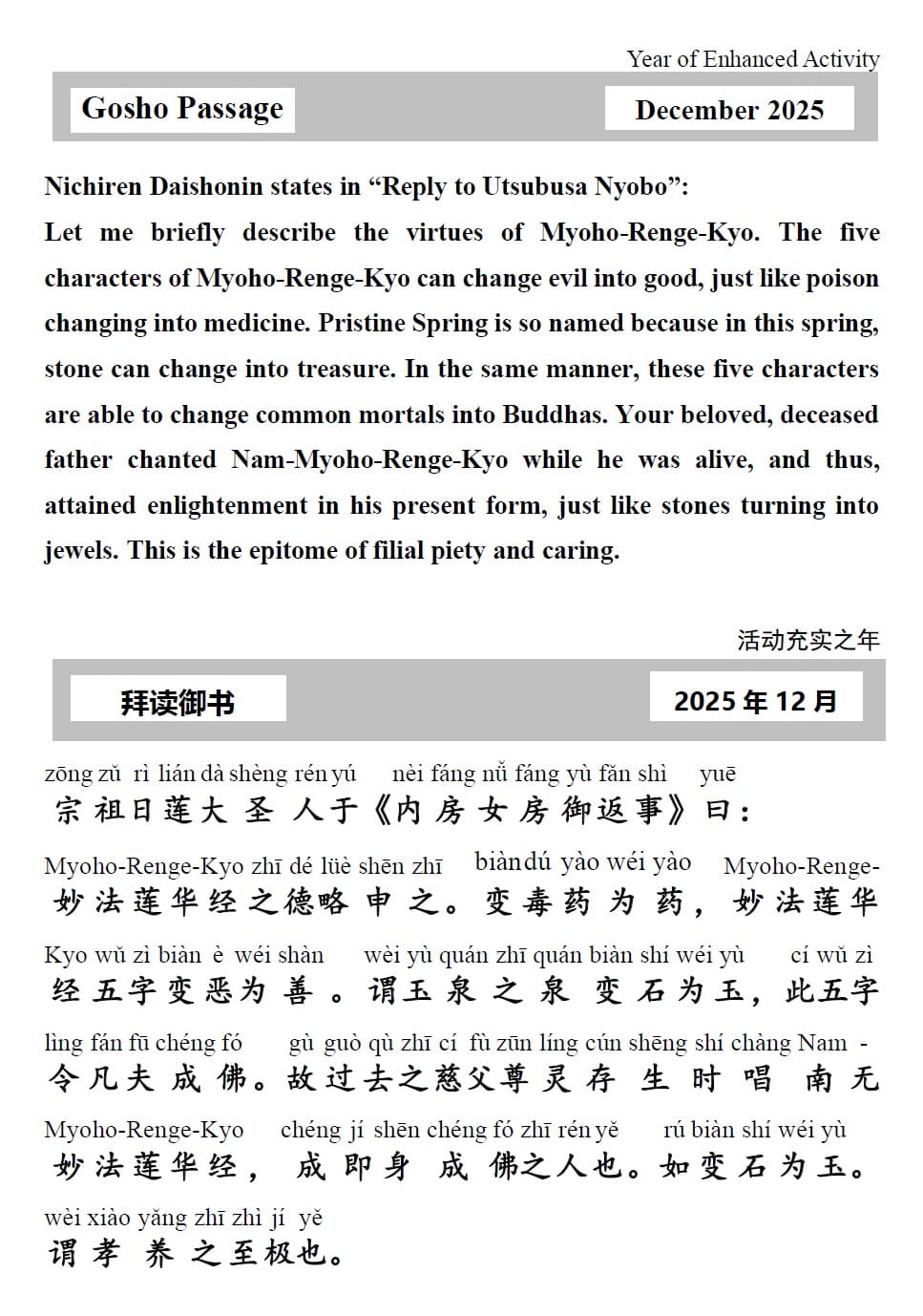 Download Gosho Passage – December 2025 / 下载 2025 年 12 月份御书文段