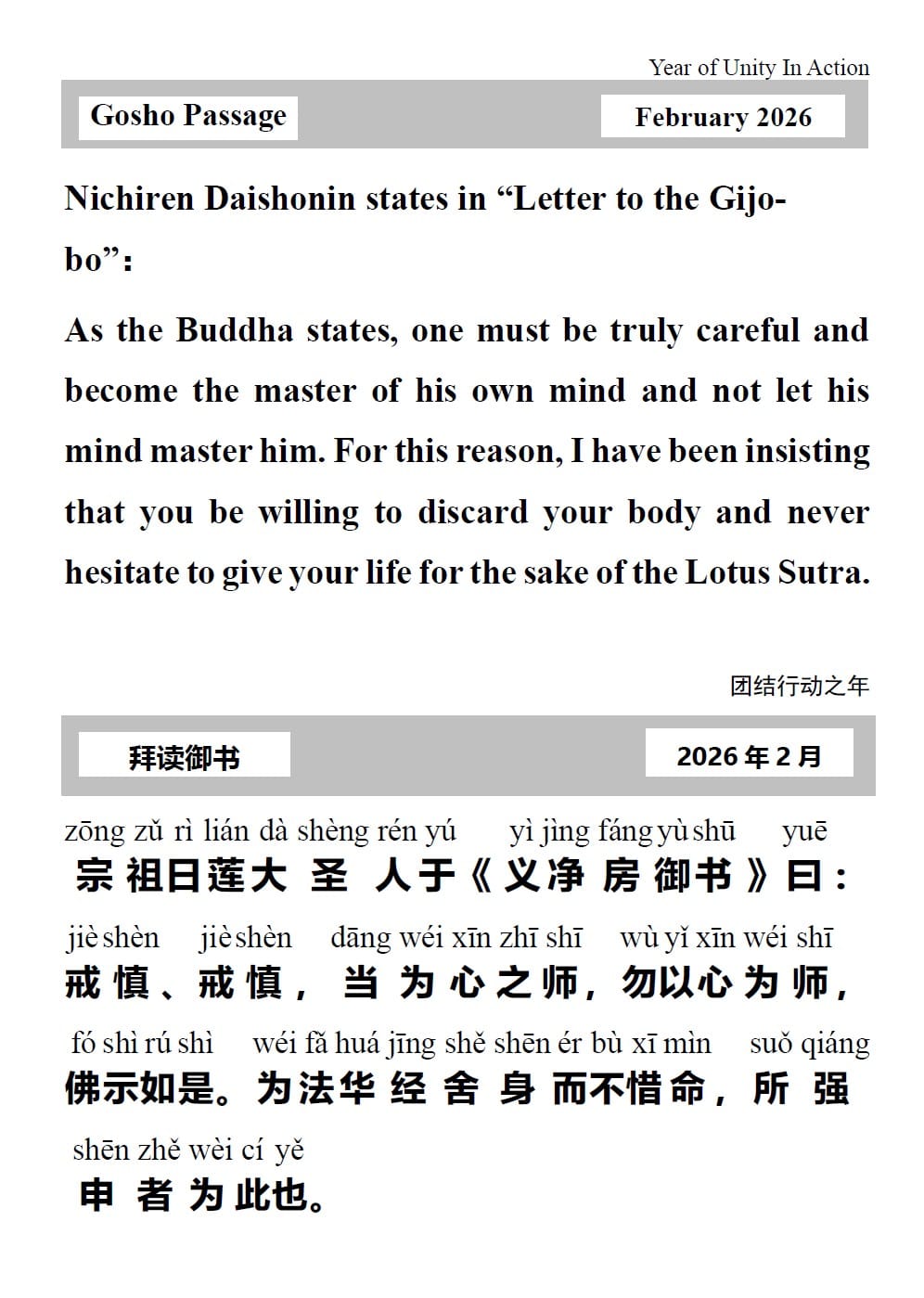 Download Gosho Passage – February 2026 / 下载 2026 年 2 月份御书文段