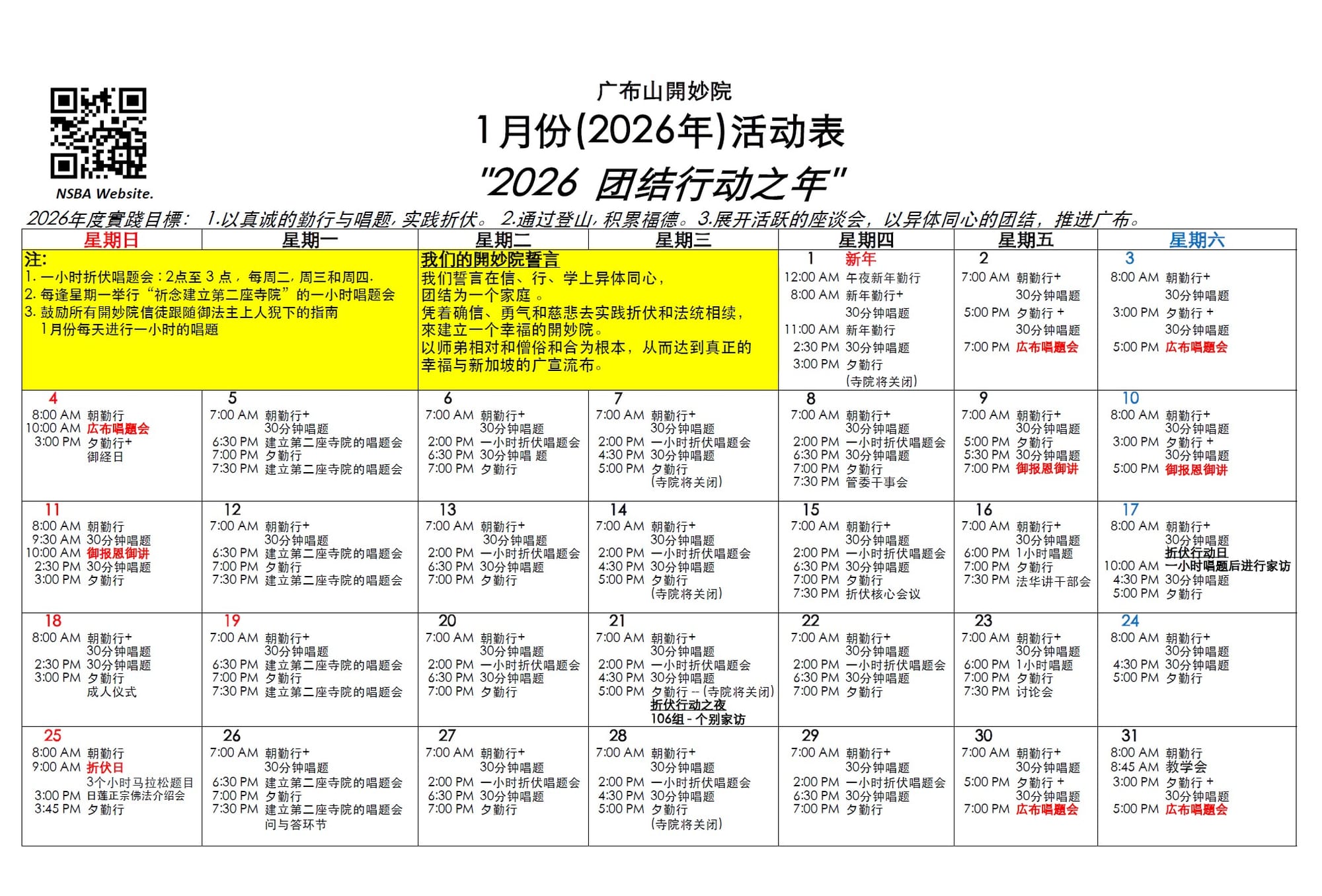 c) 折伏日: 1月25日(星期日)