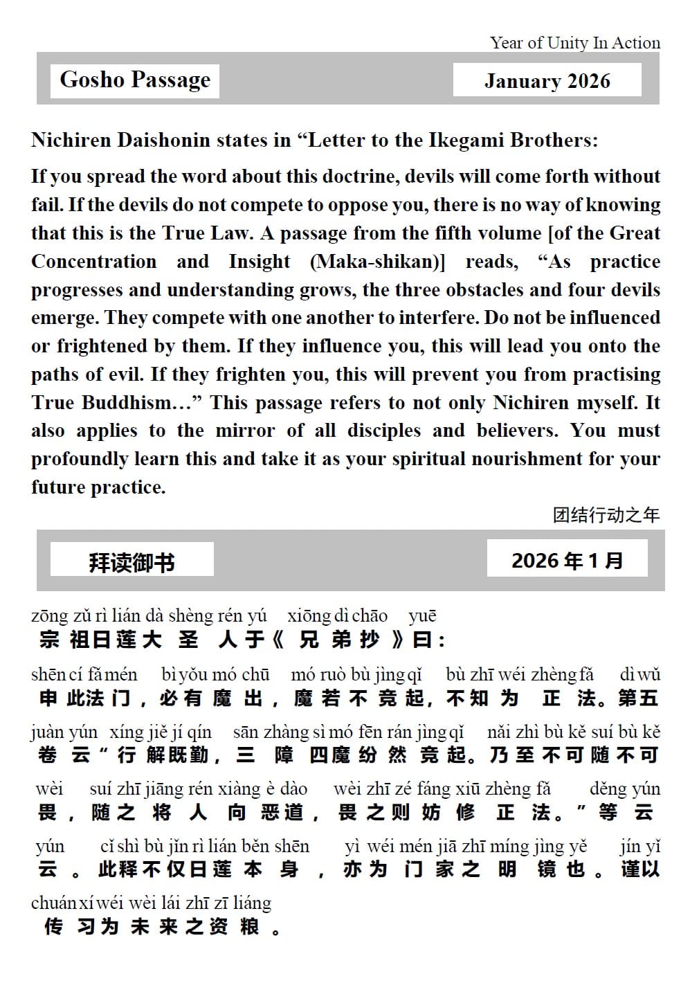 Download Gosho Passage – January 2026 / 下载 2026 年 1 月份御书文段