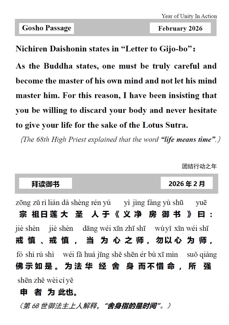 Download Gosho Passage – February 2026 / 下载 2026 年 2 月份御书文段